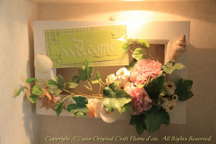 3. フラワーアレンジメント、アロマテラピーグッズ一覧 > カーネーションとシェルのウェルカムフレーム