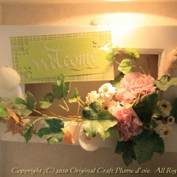 フラワーアレンジメント:カーネーションとシェルのウェルカムフレーム